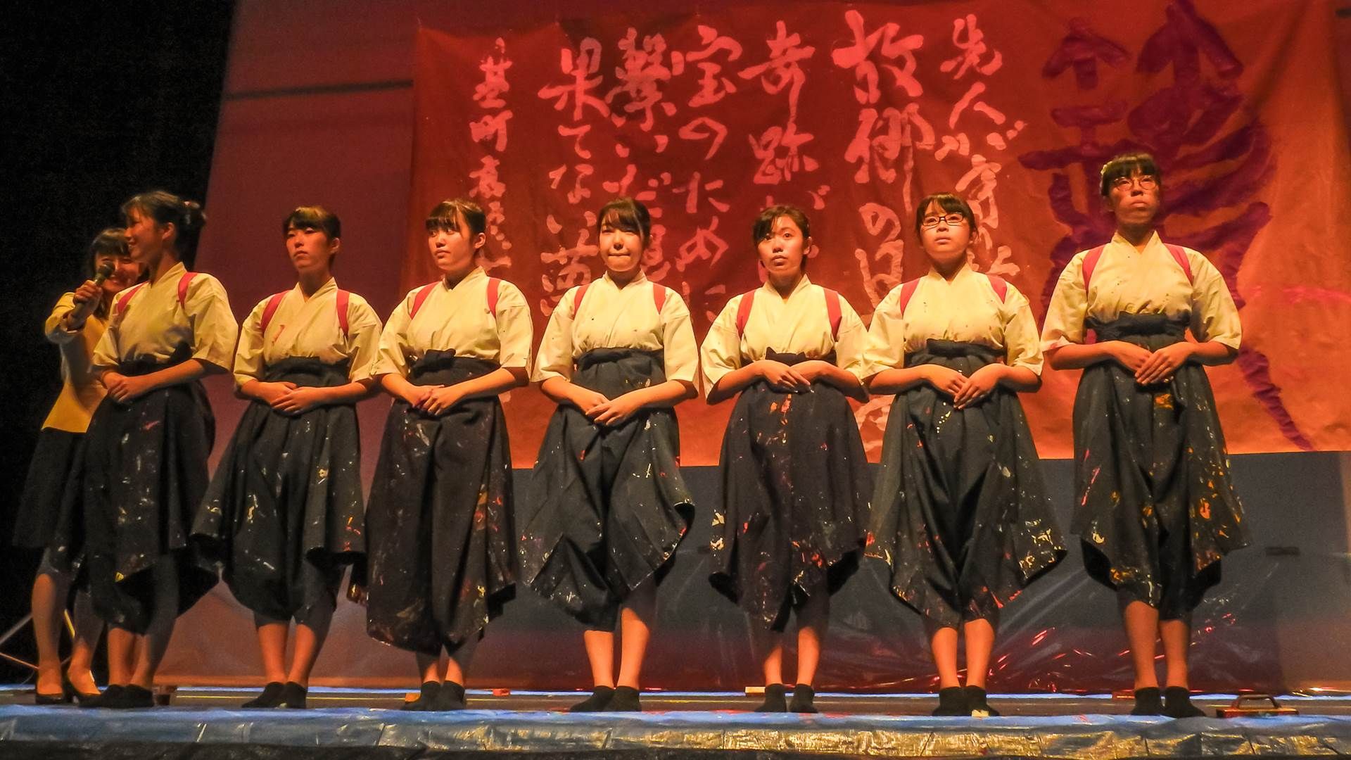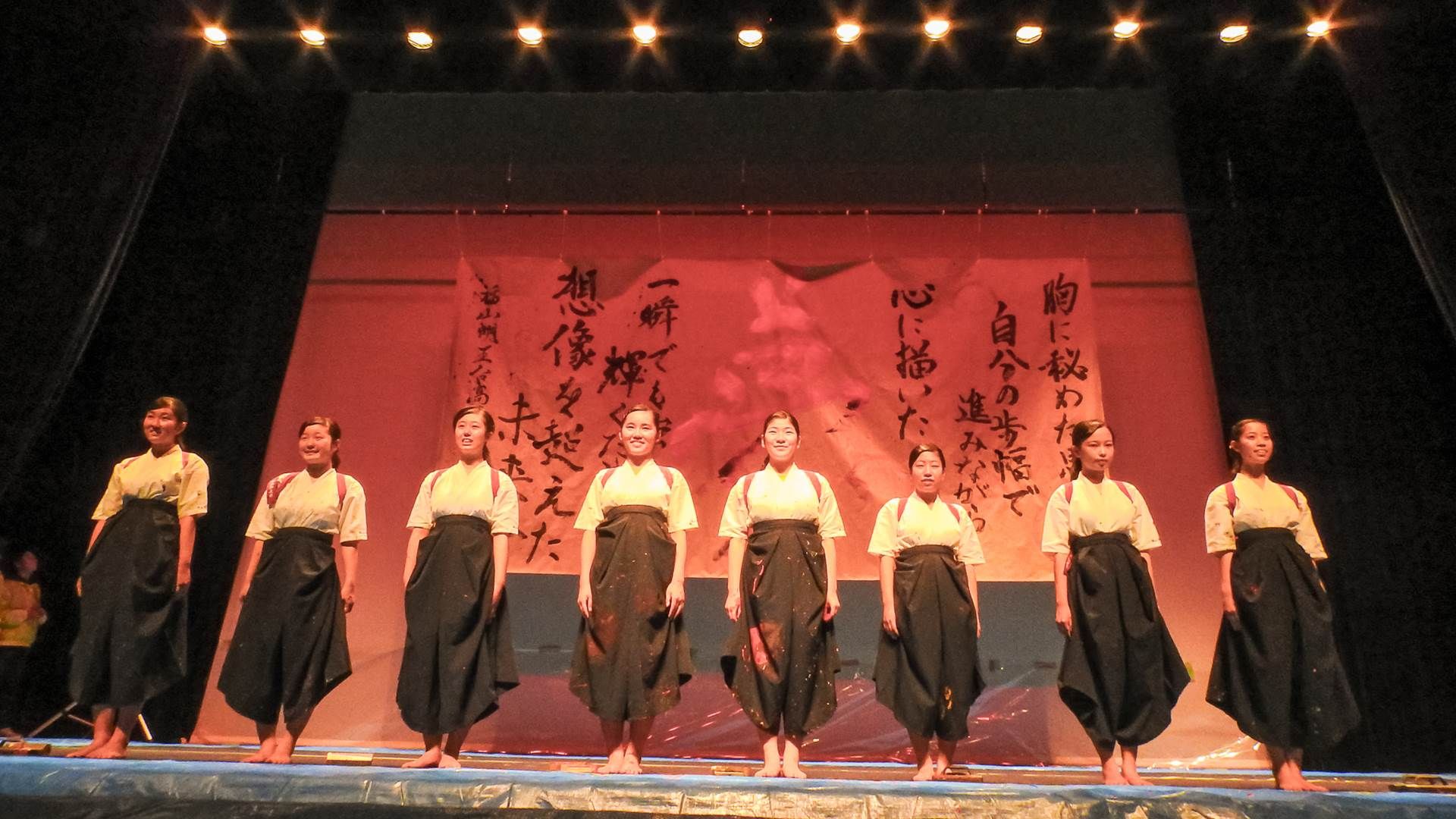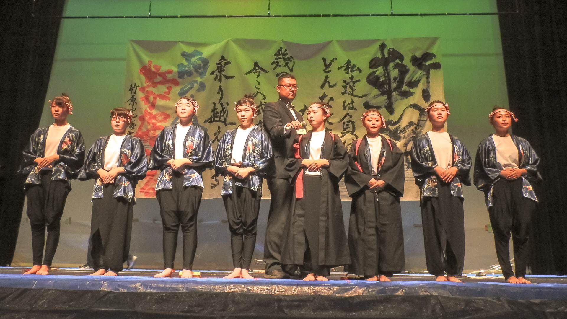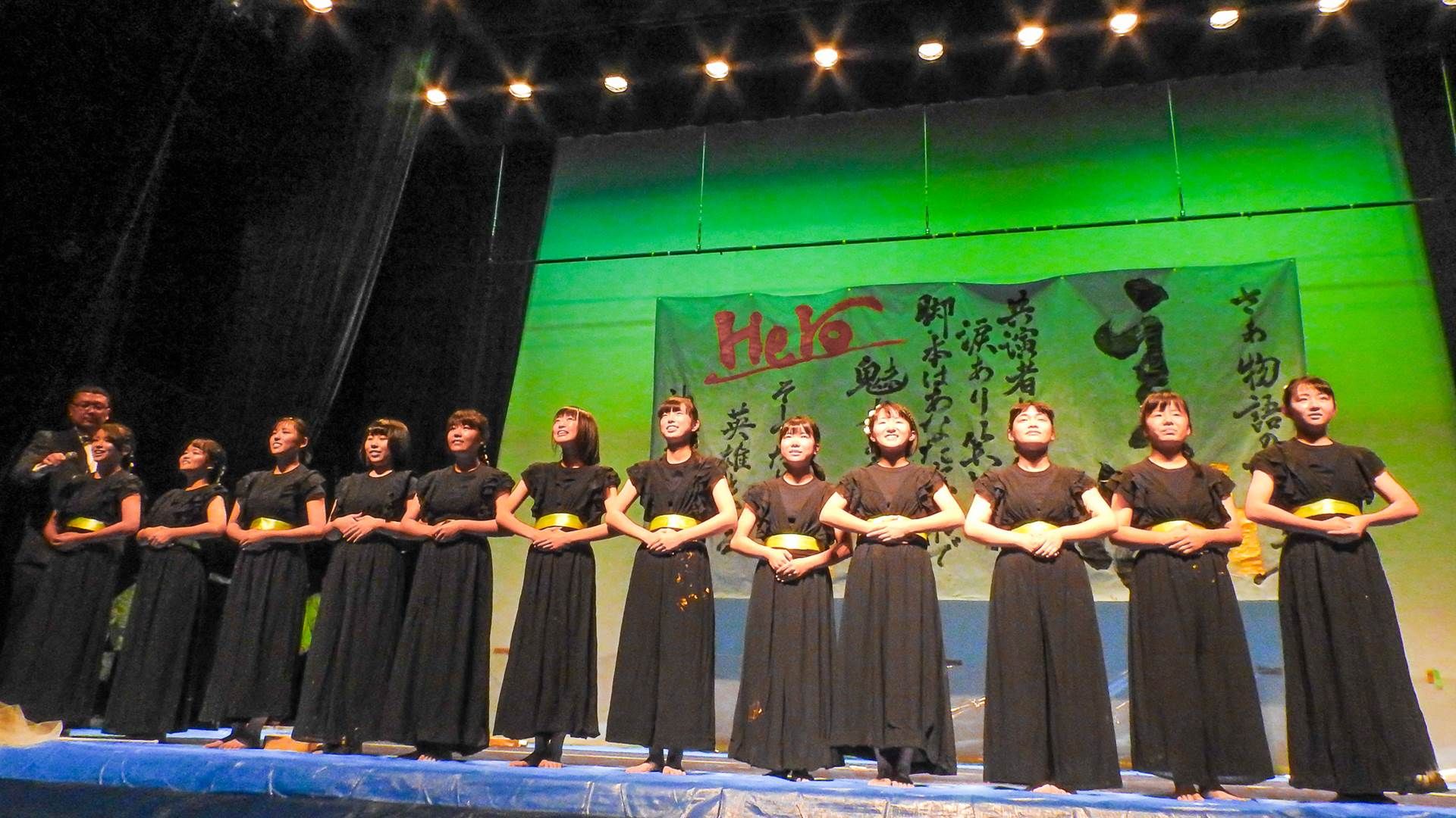 こんにちは。神辺旭高校書道部です。この度は、書道パフォーマンス·カーター大会に出場させて頂きありがとうございます。私たちは、毎年この大会に出場できるのを楽しみに練習に励んでいます。今年のテーマは「Hero」私たちはそれぞれの人生の中で主人公であり、自分だけの物語を創り上げていくのです。涙あり、笑いあり。さぁ、物語の始まりです。神辺旭ワールドをお楽しみください。