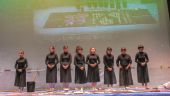 私たちは普段、古典の臨書や書道史や書論の勉強をしていますが、その傍ら、地域でのイベントに参加し、書道パフォーマンスをはじめ書道を通して地域の方々と交流を図っています。カーター大会では、高校生の皆さんの溌剌とした演技に刺激を受けつつも、例えば昨年は、「ラフィーノ」というテーマのもと、上品で洗練されたパフォーマンスになるよう衣装や書き姿などに工夫し、取り組んでまいりました。