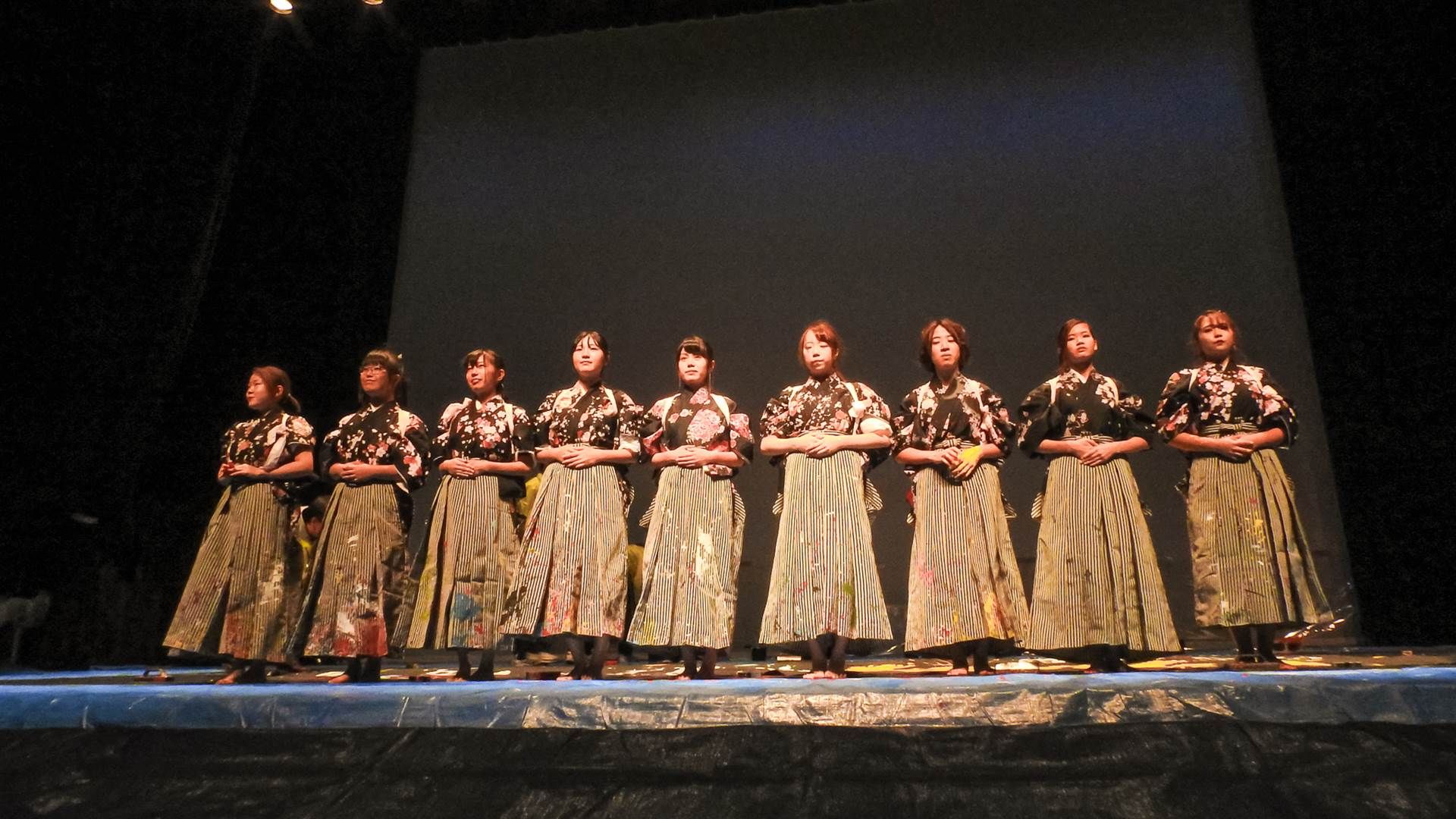 この大会は、梅花女子大学書道部がパフォーマンスを始めたきっかけとなった思い出のある大会です。現在私たちは学内外から依頼を受けて、書道パフォーマンスを披露させていただいています。今回は「StayGold」をテーマにパフォーマンスをします。仲間との絆を大切に、筆にたくして私たちの想いを響かせたいと思います。応援して下さる皆様に感謝の気持ちを込めて、精一杯演技しますのでよろしくお願いいたします。