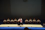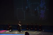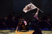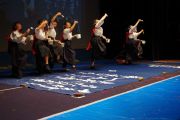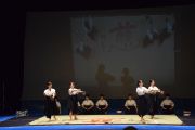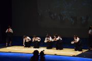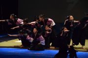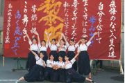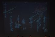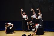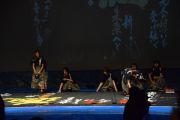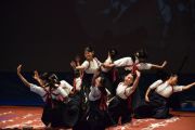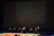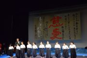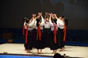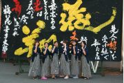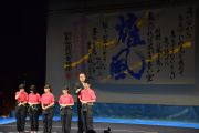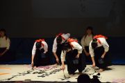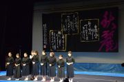 この大会は私たちが書道パフォーマンスを始めるきっかけとなった大会です。今回のテーマは「飛翔」です。仲間とともに成長しながら高みを目指していけるようにという想いを筆にたくして、優雅にはばたく様子を表現したいと思います。応援してくださる皆様に感謝の気持ちを込めて演技させていただきます。よろしくお願いいたします。