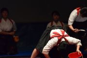 私たちは普段、古典臨書や書論·書道史などを学んでいます。その傍ら地域でのイベントに参加し、パフオーマンスを披露したり、書を通じ地域の方々との交流を図ったりしています。カーター大会では、他校の洗練された演技に刺激を受けつつも、書き姿や衣装にこだわって取り組んで参りました。今年はカーター大会の行われる「秋」をテーマに日本特有の文化、仮名文字を用いて紅葉の色付きいていく様子や月の輝きなど日本の秋の情景を表現したいと思っております。