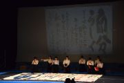 私たち基町高校書道部は1年生9人、2年生7人の計16人で活動しています。毎年こちらの書道パフオーマンス大会に出場させていただいており)、今年も甲奴でパフォーマンスを披露できることを楽しみにして練習を重ねてきました。今回、私たちは「雪月花」というテーマでパフォーマンスをします。新元号令和が制定され、その典拠が万葉集であったことから、日本の自然美を改めて見つめ直そうと思うとともに、季節が冬から春ヘ移リ変わる様子が最も自然の美しさを象徴していると考え、このテーマにしました。