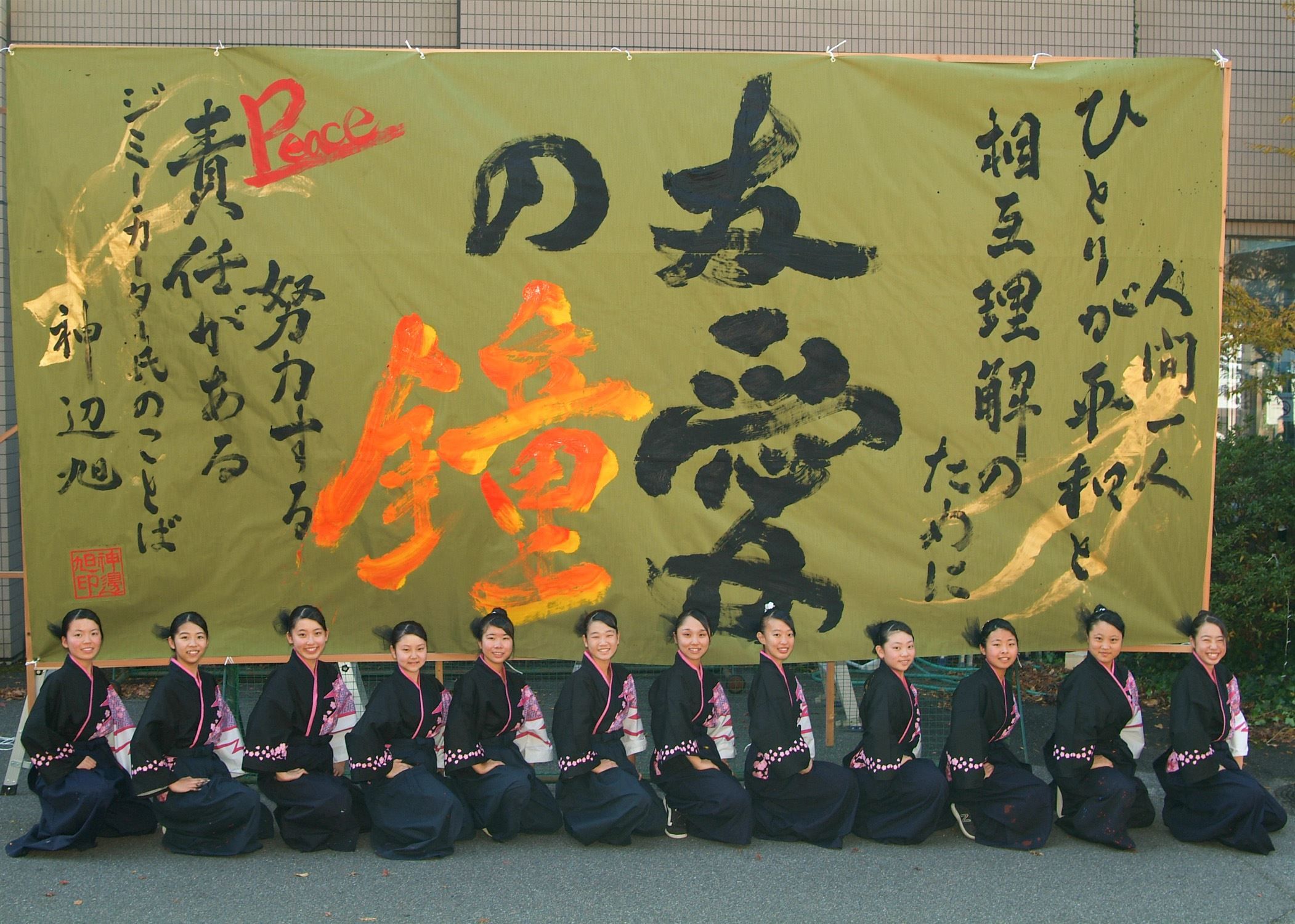私たちの書道パフォーマンスを通して、多くの人たちに「友愛の鐘」の想いが響きますように!