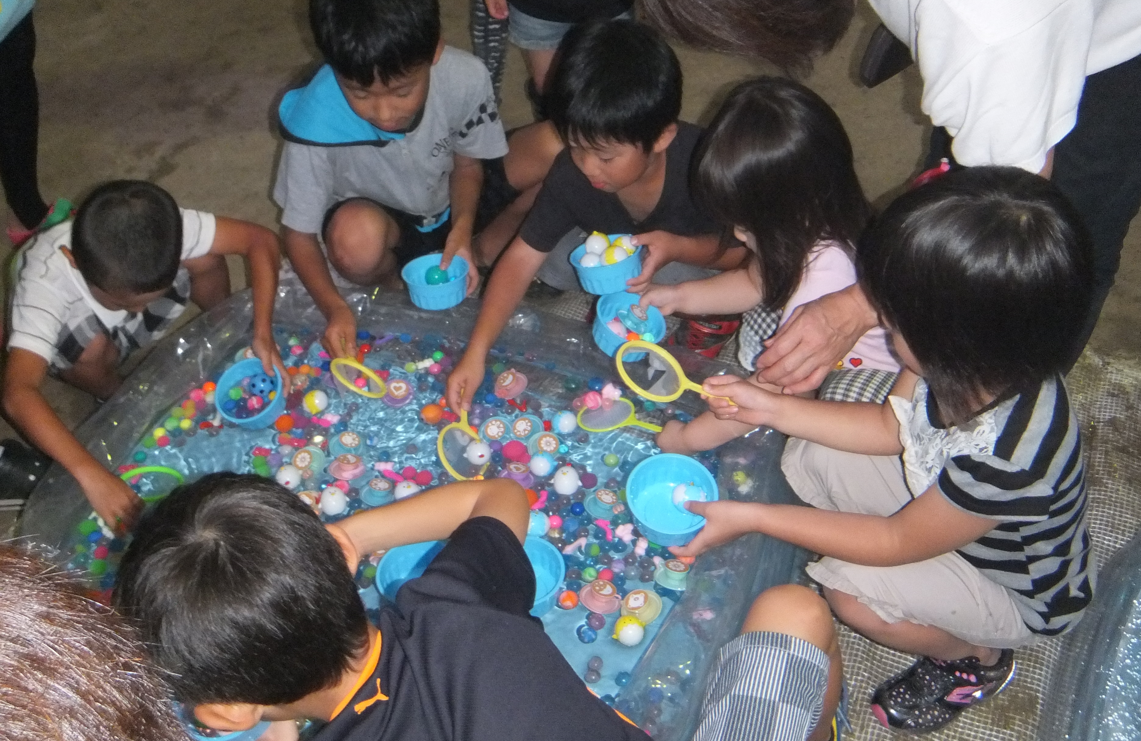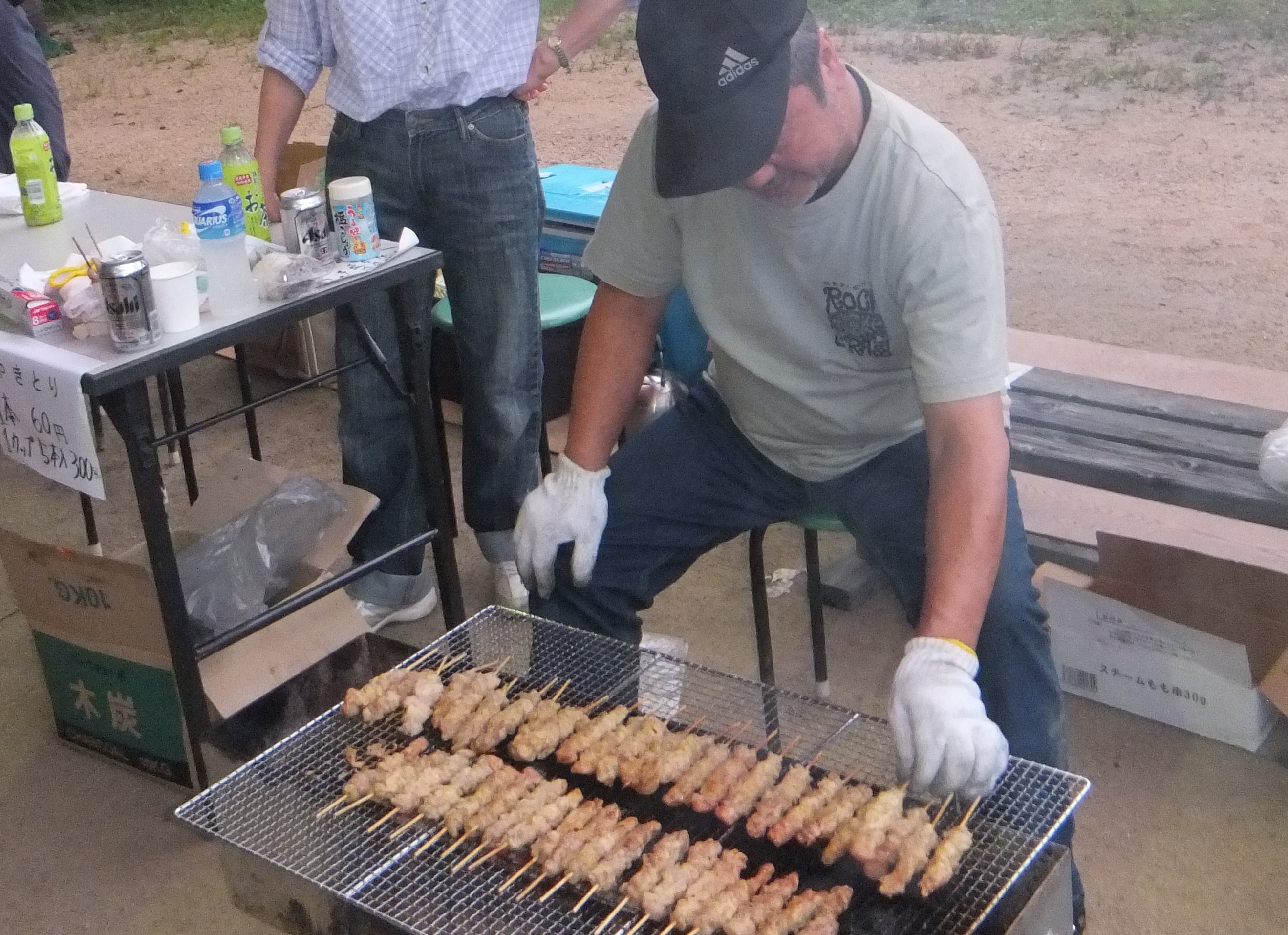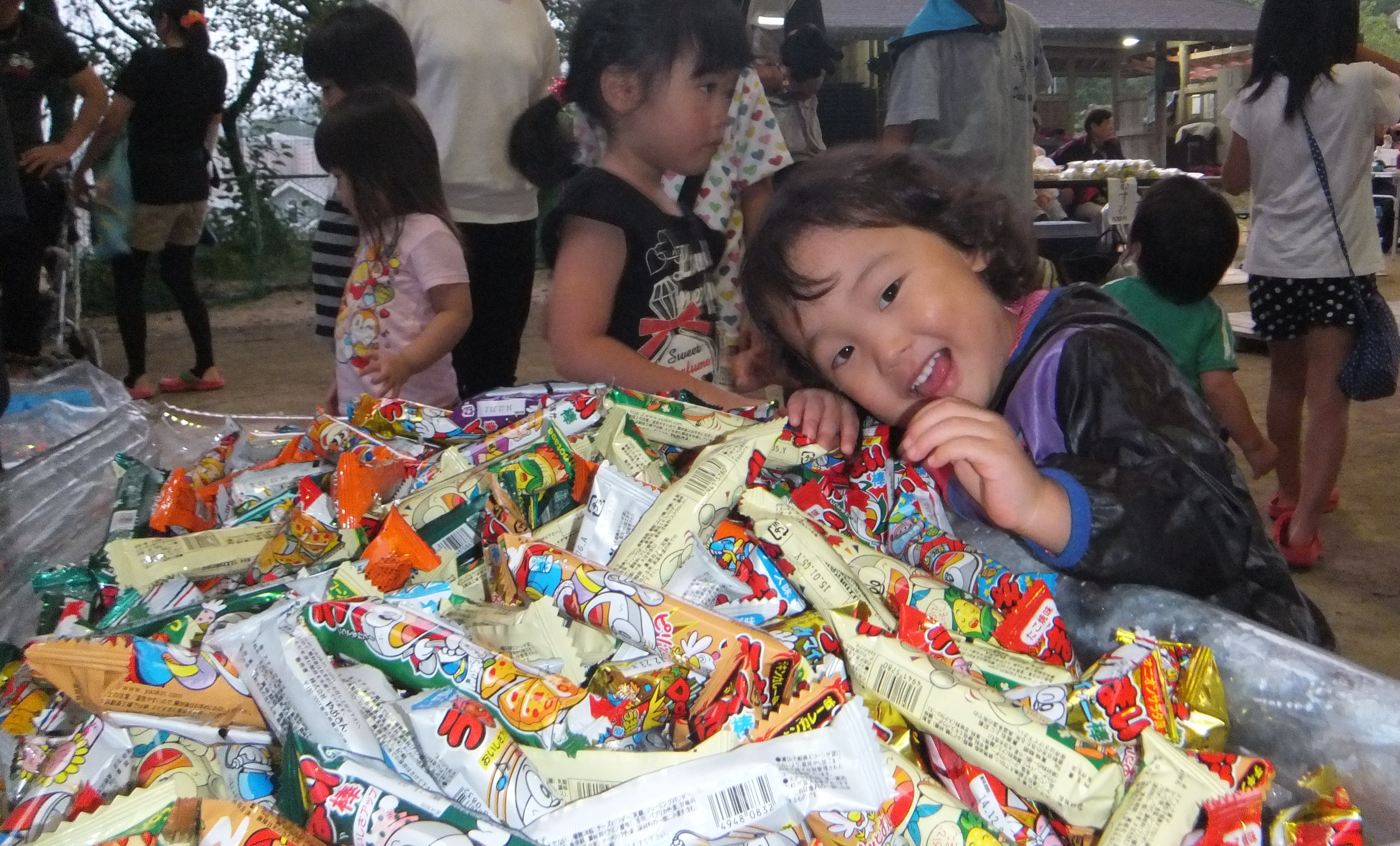 グランドゴルフの合間には焼き鳥を食べたりバラ寿司を食べたり、子どもたちはゲームコーナーで遊びます。