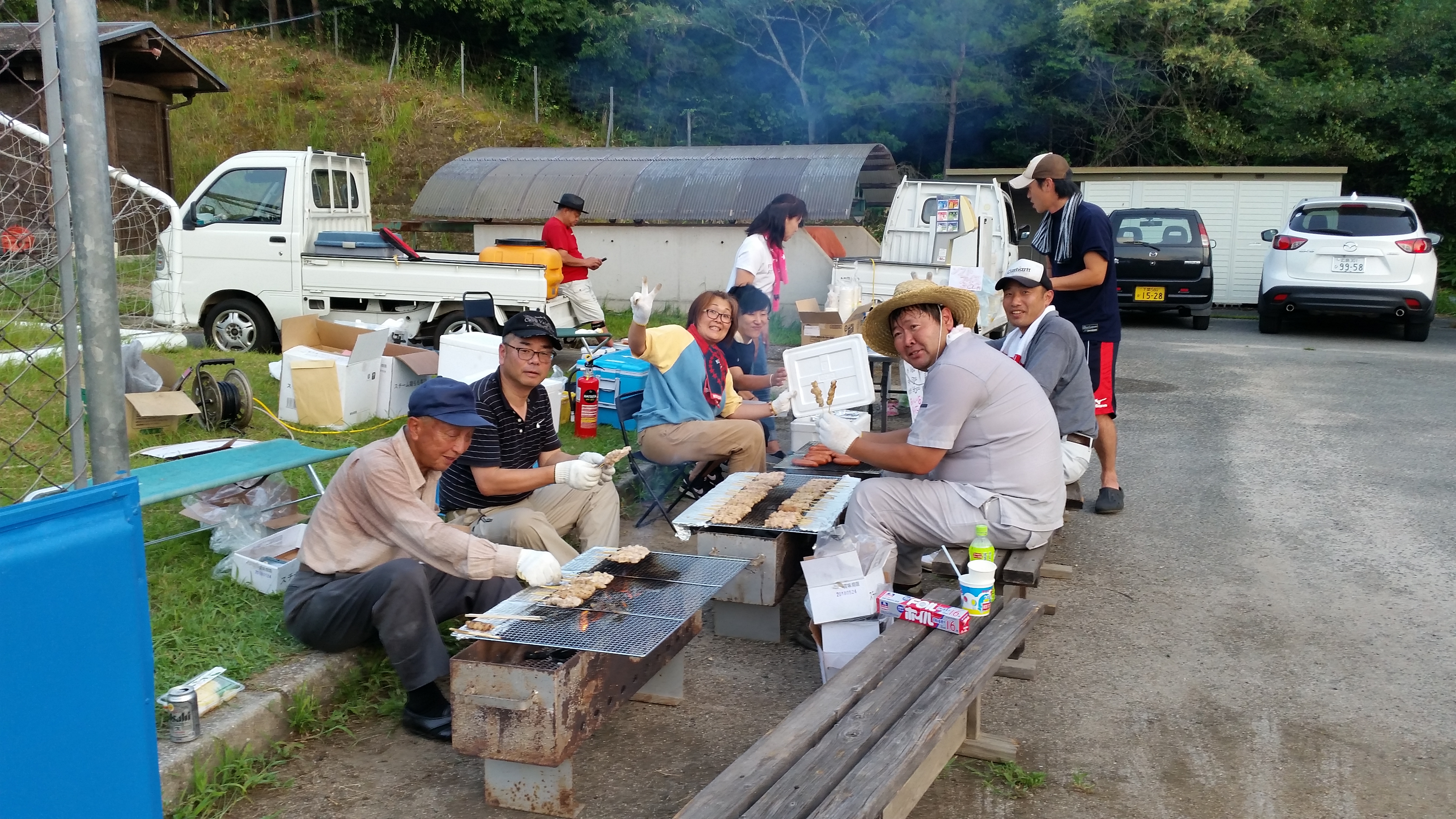 生活環境部&地域振興部の皆さんには焼き鳥やフランクフルトを暑い中焼いていただき