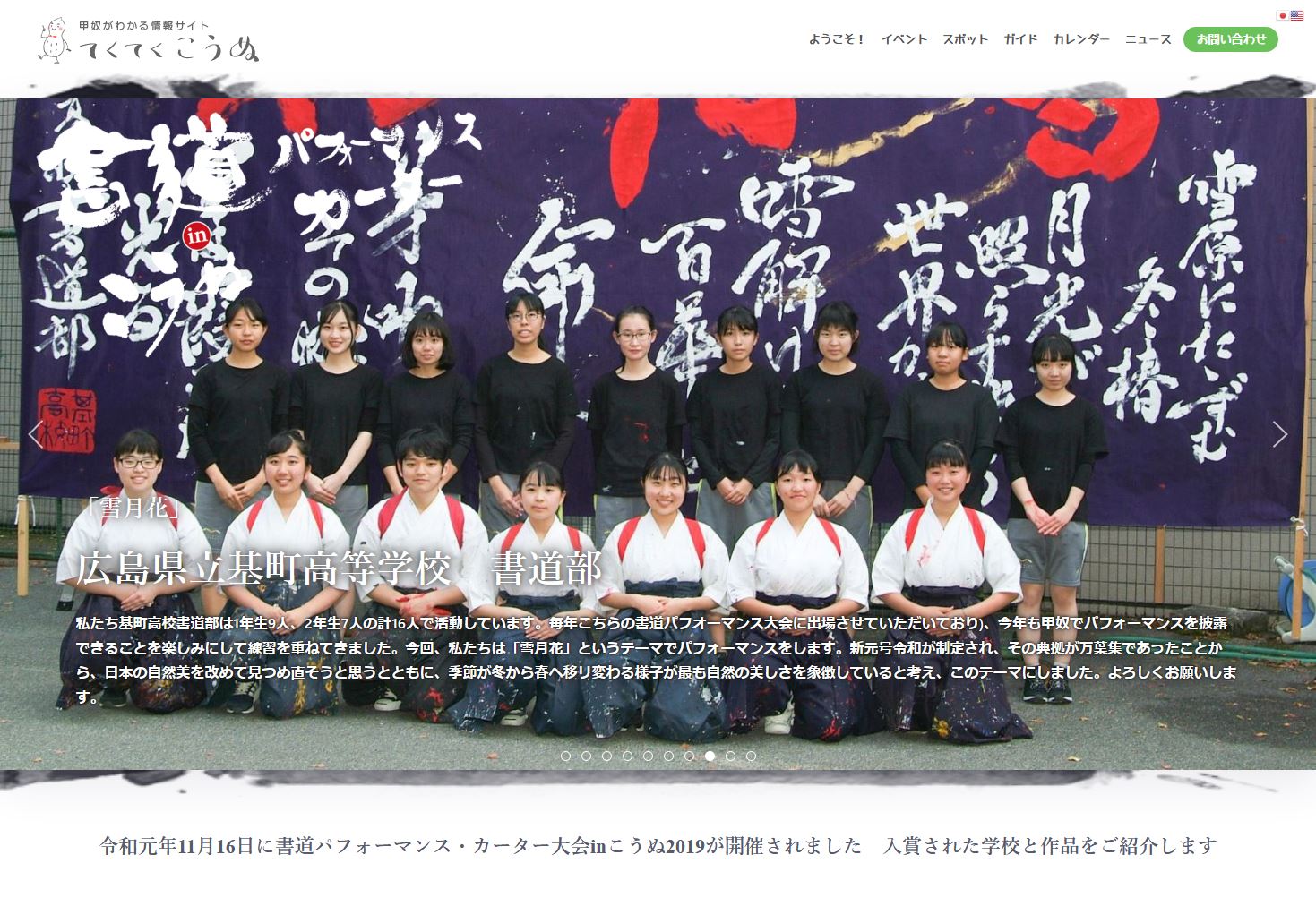 令和元年11月16日に書道パフォーマンス・カーター大会inこうぬ2019が開催されました 入賞された学校と作品をご紹介します